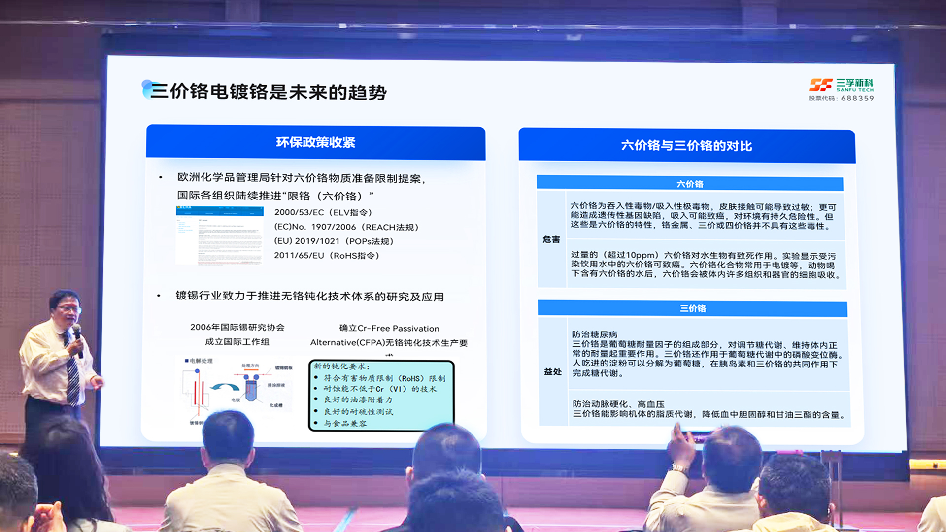 5月25日,由霸州博亚新材料科技有限公司主办的,世界首套智驱复合新能电镀锡生产线技术发布会及东北大学金属材料国家试验室软钢试验基地揭牌仪式在河北廊坊召开。乐虎lehu唯一官网新科乐虎lehu唯一官网研究院院长朱平博士应邀出席,并作《新型高速连续MSA电镀锡及三价铬镀铬专用化学品及产业化应用》主题报告,向现场嘉宾分享高速镀锡规模化应用成果及三价铬电镀技术的最新进展。